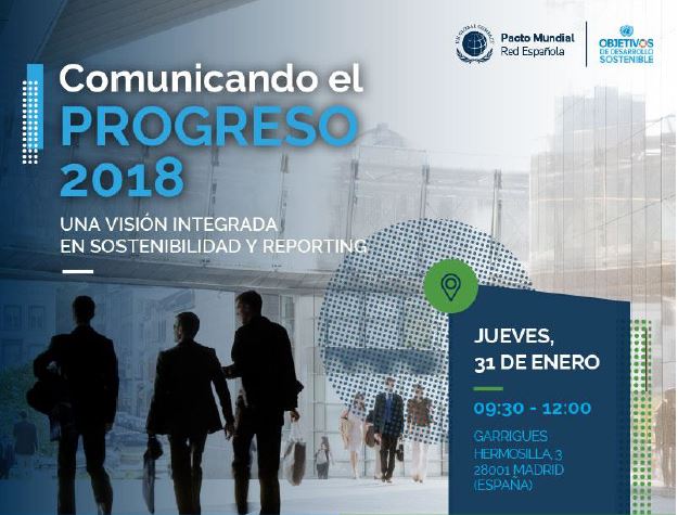 Mañana jueves 31 de enero la Red Española del Pacto Mundial presenta el informe ‘Comunicando el progreso 2018. Una visión integrada en sostenibilidad y Reporting’. ¿Cual ha sido el compromiso y los principales avances de las empresas españolas en el cumplimiento de los 10 Principios del Pacto Mundial y de los ODS?
