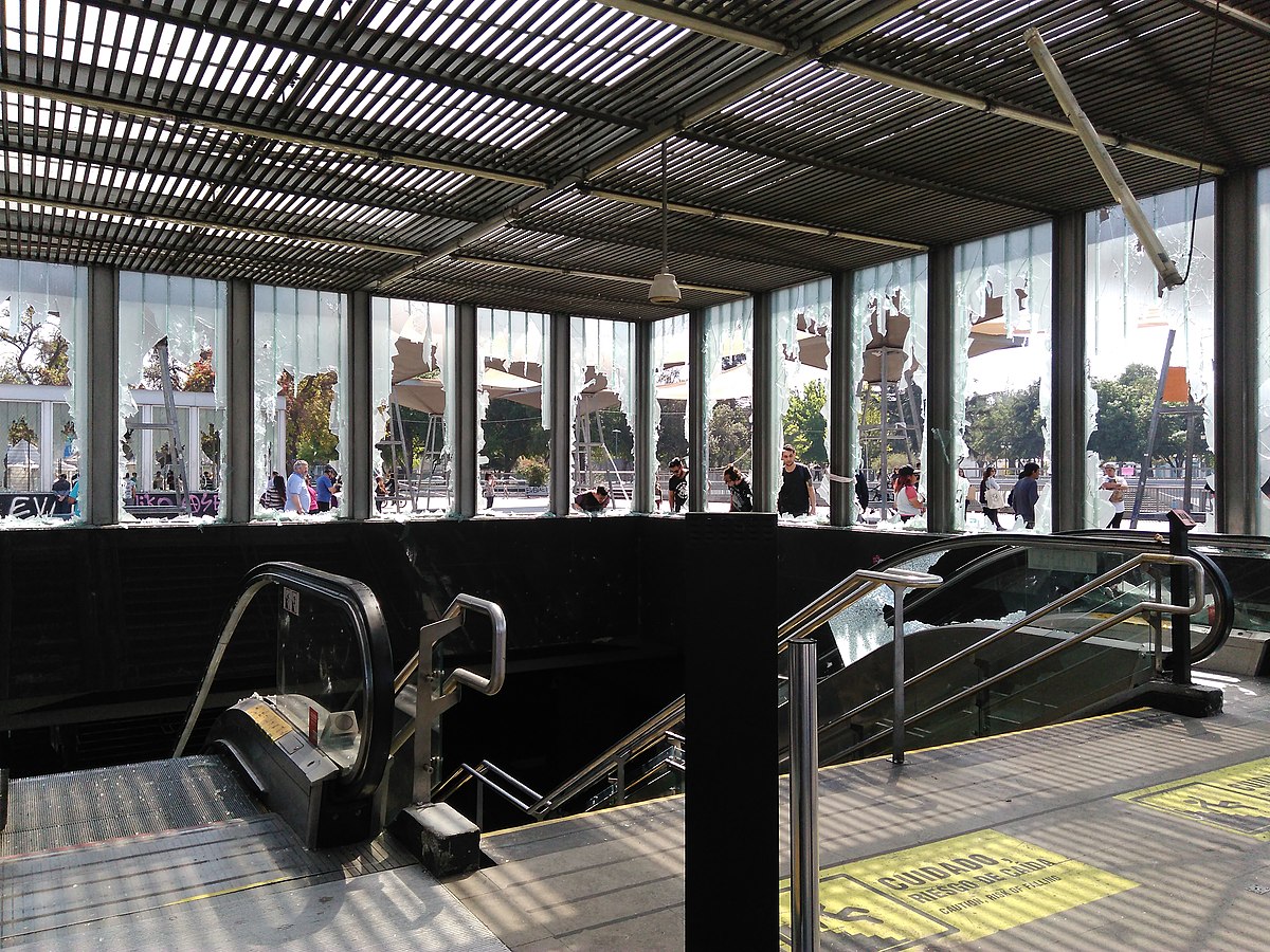 Fotografía: La estación de metro Plaza de Maipú destruida por vándalos durante la manifestación del 18 de octubre de 2019, gatillada por el alza en la tarifa del metro. Fecha 21 de octubre de 2019, 11:47:46 Autor Jorge Barrios Riquelme